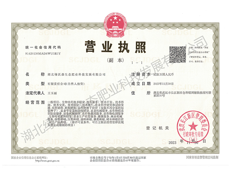 湖北綠沃森生態(tài)肥業(yè)科技發(fā)展有限公司是一家集科研開(kāi)發(fā)、生產(chǎn)、貿(mào)易為一體的現(xiàn)代化高科技企業(yè)。公司成立于2023年11月30日,公司坐落于湖北省武漢市,公司擁有管理人員23人,高等工程師3人,技術(shù)人員12人,工人150余人,占地面積150畝,年生產(chǎn)能力超過(guò)100萬(wàn)噸。
